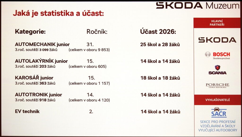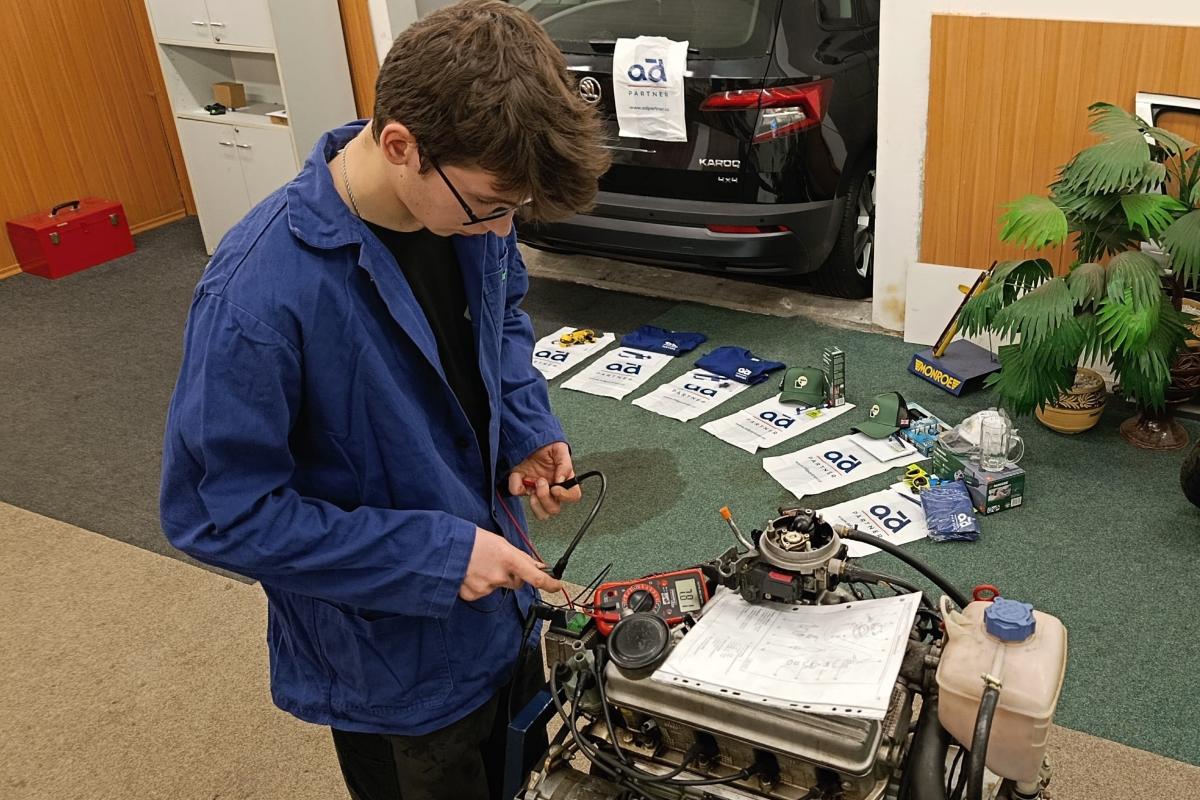 Dne 13. 2. 2026 proběhlo na naší škole krajské kolo již 31. ročníku celostátní odborné soutěže Autoopravář Junior 2026. Studenti se jako každoročně utkali jak v teoretických tak praktických dovednostech. Akci podpořila firma AD Partner Karlovy Vary.